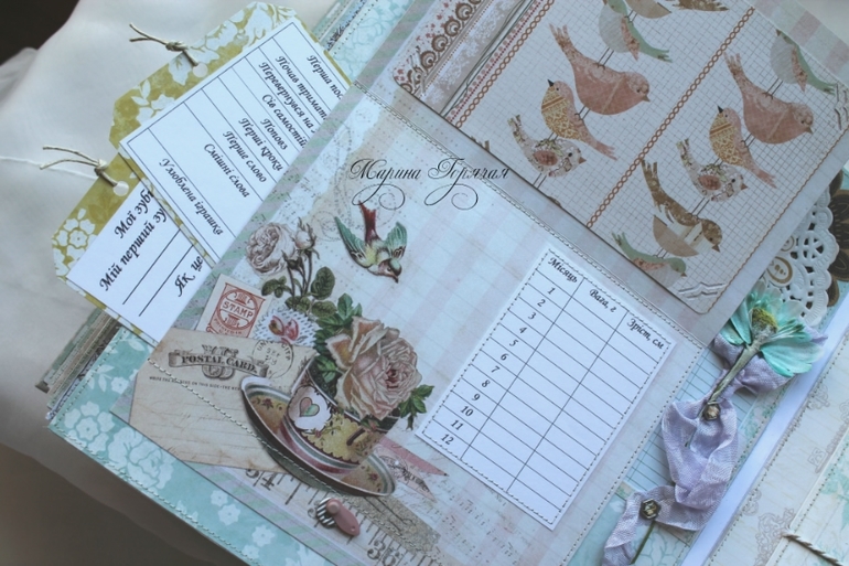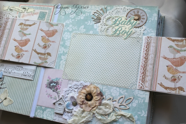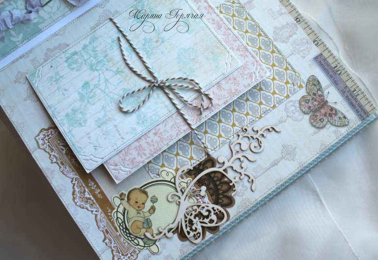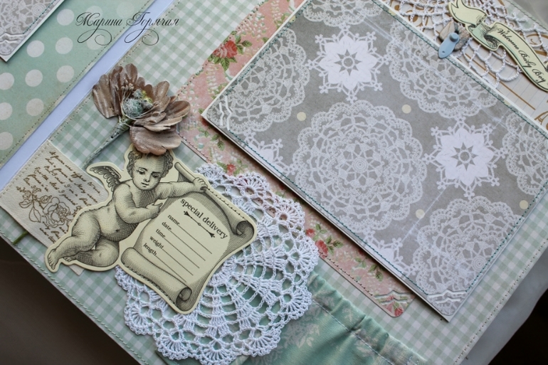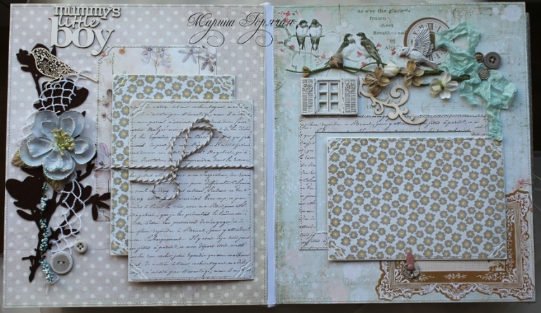 Сегодня я хочу показать вам еще один мальчуковый альбом, на создание которого меня вдохновили нежные кружевные работы . Он посвящен первому году жизни малыша Ильи, совсем недавно появившегося на свет)). В целом это сочетание бумаги Kaisercraft, Prima и MME, кружева ручной вязки и моих любимых примовских украшений!