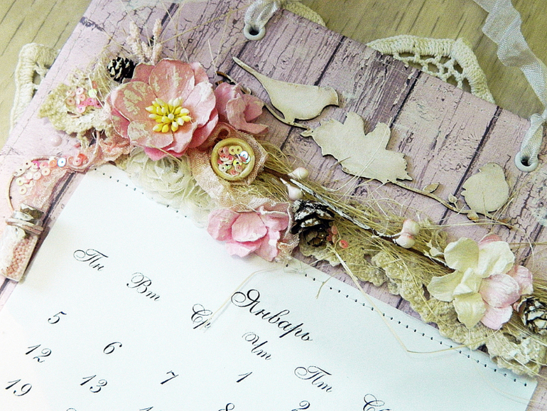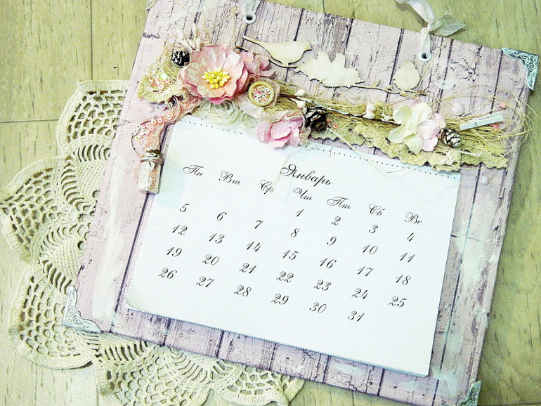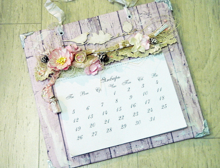 СОВМЕСТНЫЕ ПРОЕКТЫВот и первый календарь сделала я, готовится еще один!Попробовала сделать в стиле Шебби шик! По-моему что-то есть...очень понравилось делать такие календарики! В планах сделать их на подарки к Новому году!А данный поедет жить в комнату к моей крестной дочке Варваре! Ее семья состоит из 4 человек, как раз птички с этим смыслом (папа, мама и две доченьки)!