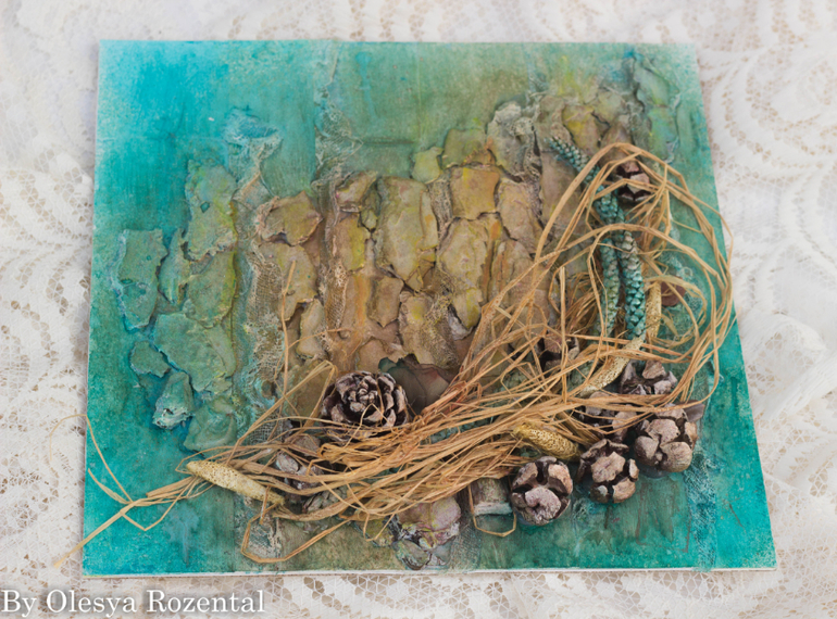 теперь в процессе альбомчик для сына с легким намеком на микс медию =) . А панно(если это панно вообще,может просто страничка)я делала по мк . Еще очень порадовала вешалочка от Melissa Frances,мне кажется она в тему,да и не пришлось заморачиваться с петельками.Бережно собирала шишечки,веточки,кору и прочий декор как псих одиночка Панно продается,цена празднично-приятная