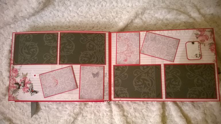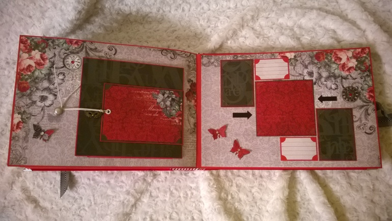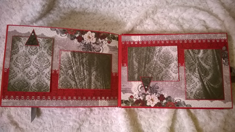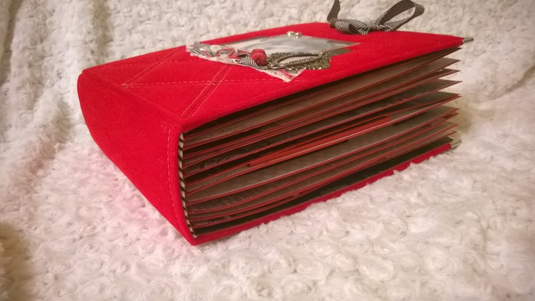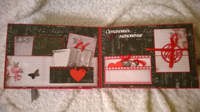 Формат альбома 21:30 см, 12 разворотов, на обложке красный бархат (никогда именно эту ткань не могу сфоткать передав ее истинный насыщенный цвет).