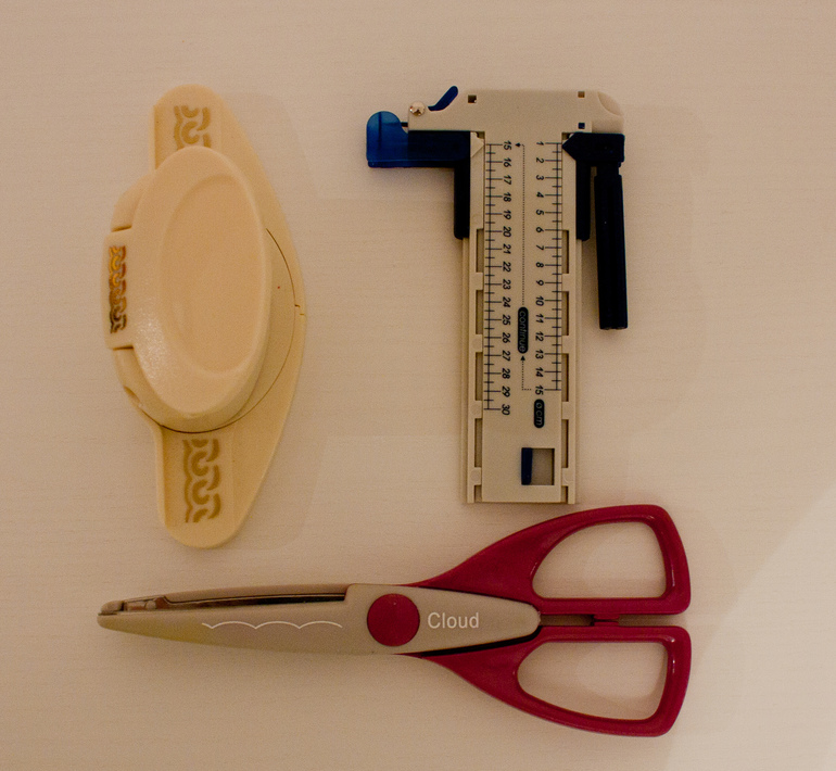 2. Набор: бордюрный дырокол, круговой резак, ножницы "облако". 250р.