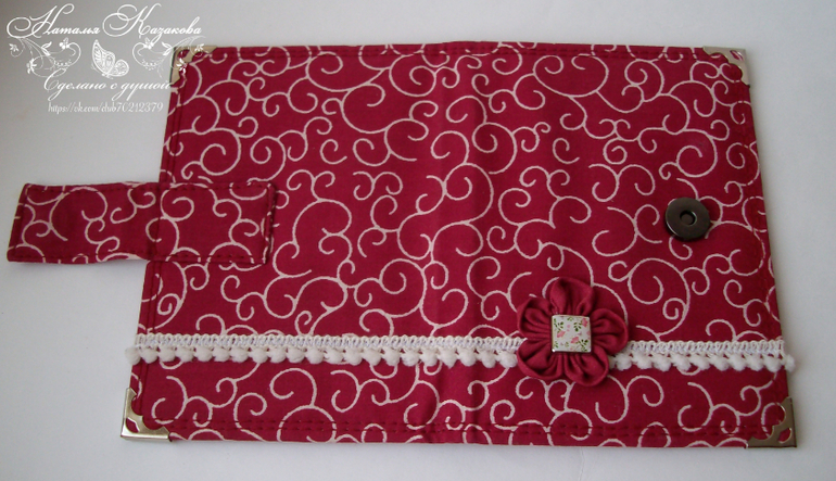 Очень аккуратная обложечка))красиво и ничего лишнего. внутри тоже очень понравилась. чистенько,аккуратненько. покорил цветочек. вы его сами делали?
