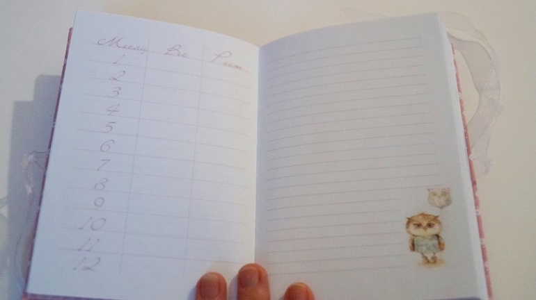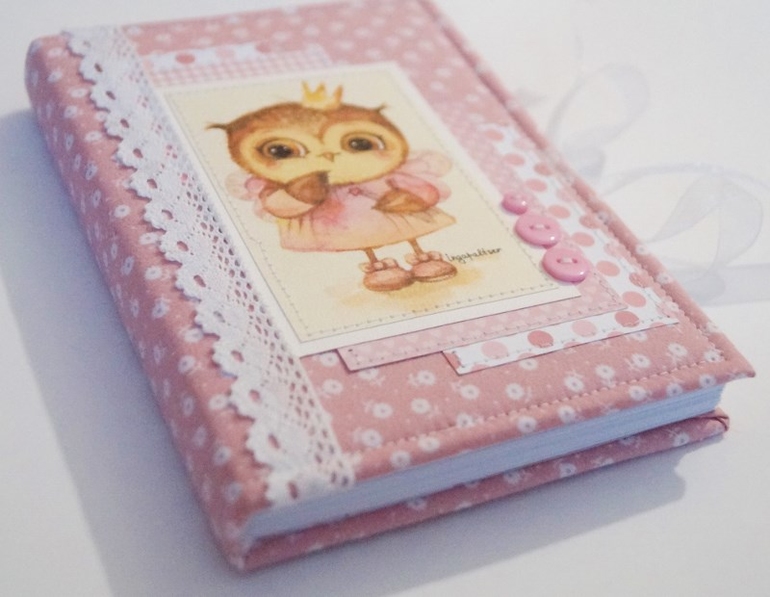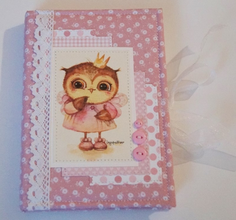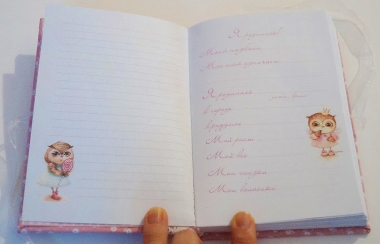 Блокнотыда, все делают, а я вот только-только))) первый мой блокнот для записей мамы о своей малышке. В оформлении совушки Инги Пальцер, тоже только ленивый их не использовал)))) Формат А6, разделителей нет, т.к. просили только страничку с данными девочки и рост-вес.