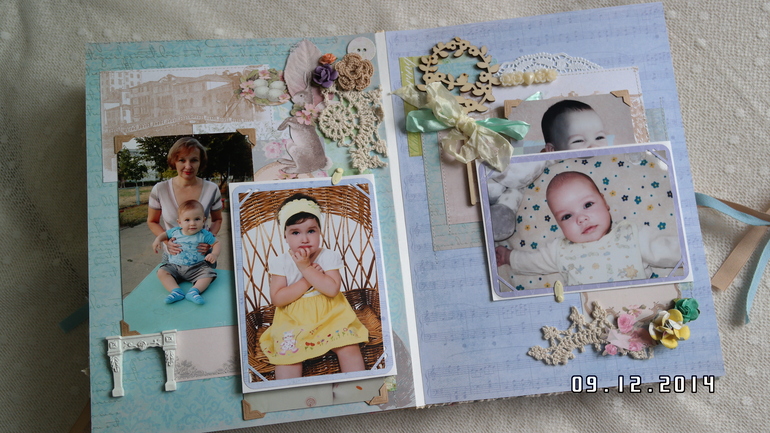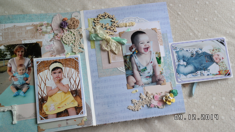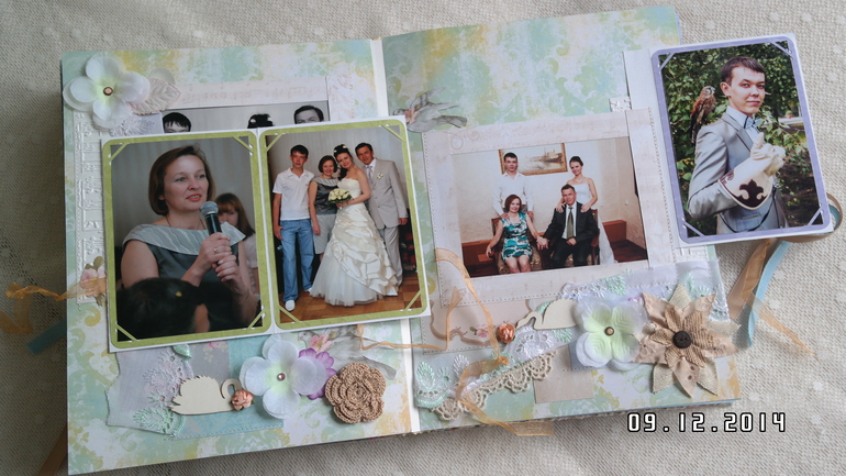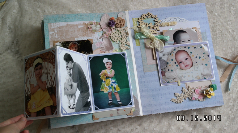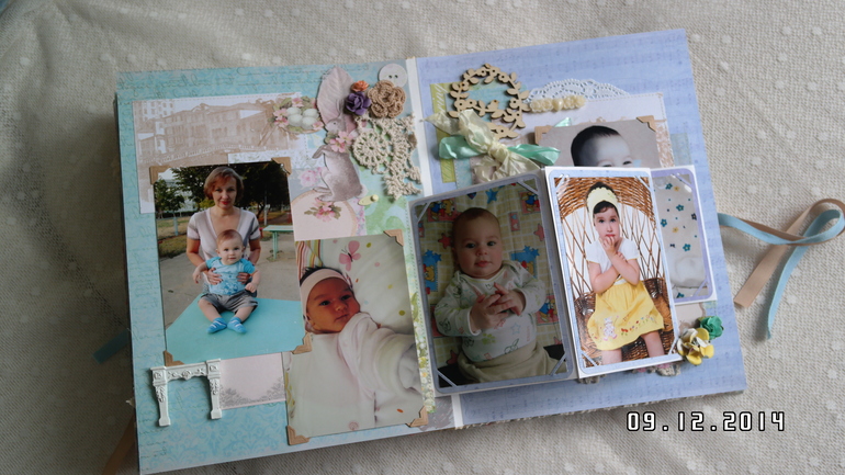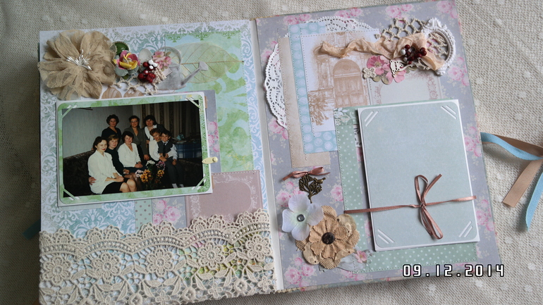 Всем привет! Хочу сегодня сегодня показать альбом для моей мамы,у нее совсем недавно был юбилей! Формат 25 на 30 см, 5 разворотов, 10 страниц, поместилось около 30 фото 10 на 15, есть красивый кружевной карман для открыток и памятных вещиц,ручной переплет. Первый разворот посвящен детству мамы и родителям, второй - детям (мне и моему брату), третий разворот свадьбам детей, четвертый - внукам (их уже 3), пятый разворот коллегам по работе и празднованию юбилея. Обложка как обычно мягкая и обтянута красивой тканью Тильда! В альбоме много цветов ручной работы и украшений коллекции Тильда! Спасибо всем за просмотр!