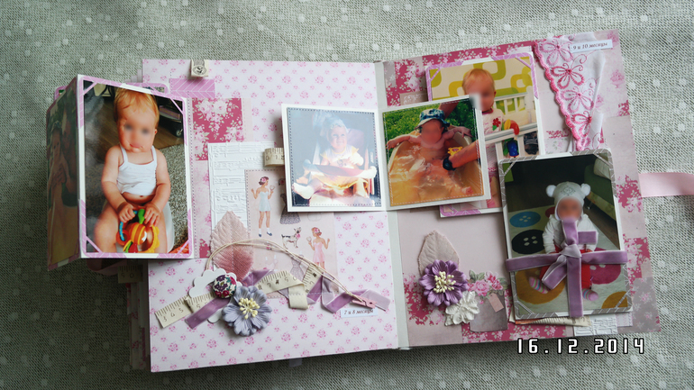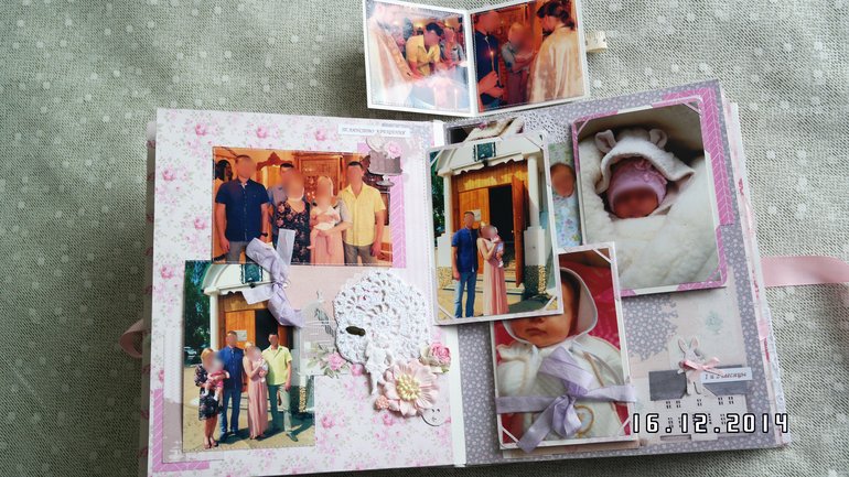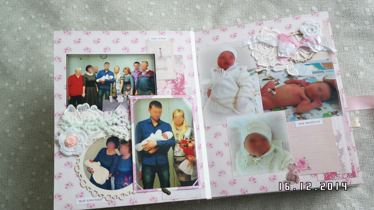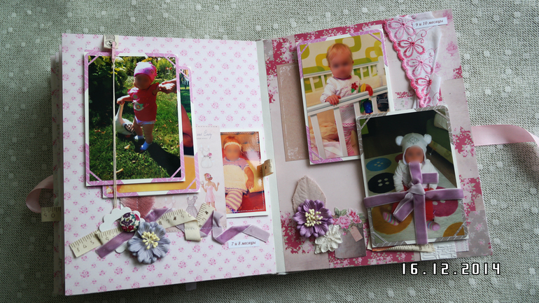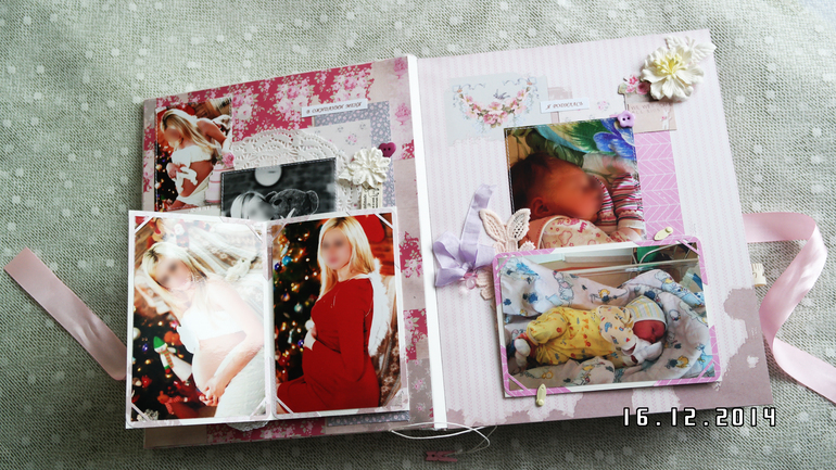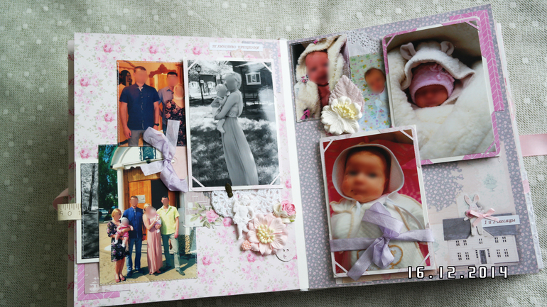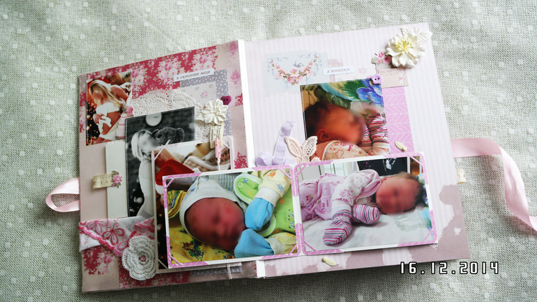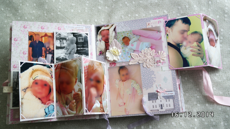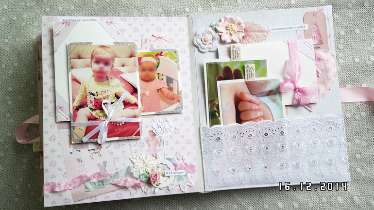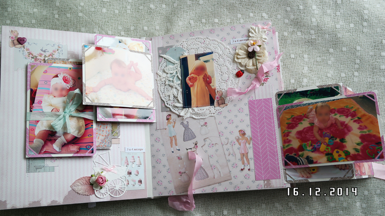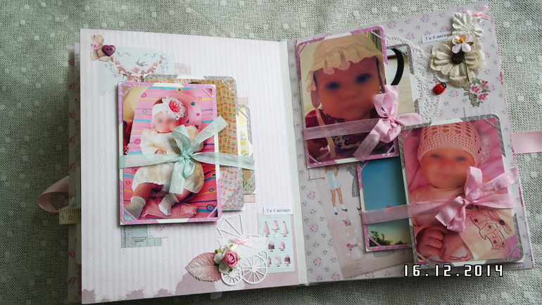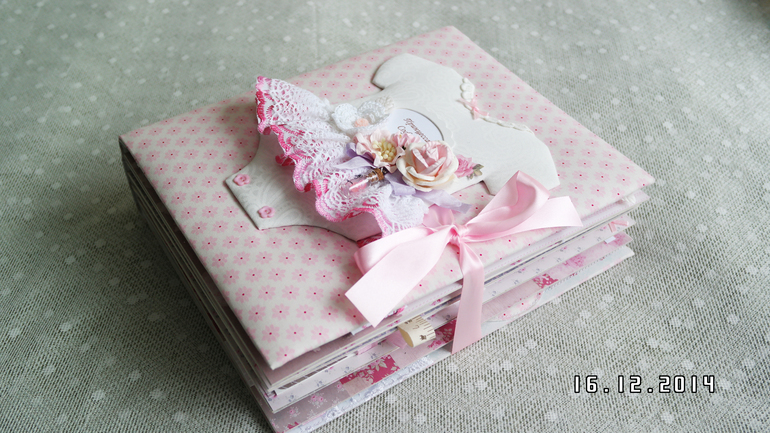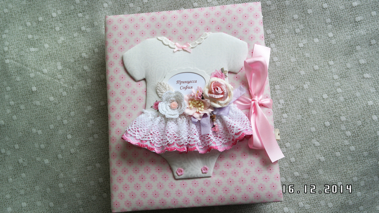 Альбомы ДетскиеВсем привет! Хочу поделиться с вами сегодня новыми работами. Это нежный альбом с красивым платьем на обложке для маленькой принцессы Софии, коробочка для крещения и книжечка для достижений! Мама Софии - хотела, чтобы в альбоме присутствовал розовый цвет, кружева, чтобы по альбому сразу было видно, что он для девочки. Надеюсь у меня это получилось??! В нем есть: тематические странички про ожидании, рождение, выписку, семью, месяца от рождения до года и многое др. Почти все страницы, обложка и украшения из коллекции Тильда. Получился очень объемный почти 8 см, формат 25 на 30 см, 6 разворотов,12 страниц, поместилось около 100 фото 10 на 15 и другого формата, красивый кружевной карман для для свидетельства о крещении, таблички - ножка, ладошка, метрика, первые слова, мешочек для зубика и локона, книжечка со снимками УЗИ. Очень много раскладушек для фото и книжечек для фото. Всем спасибо за просмотр!