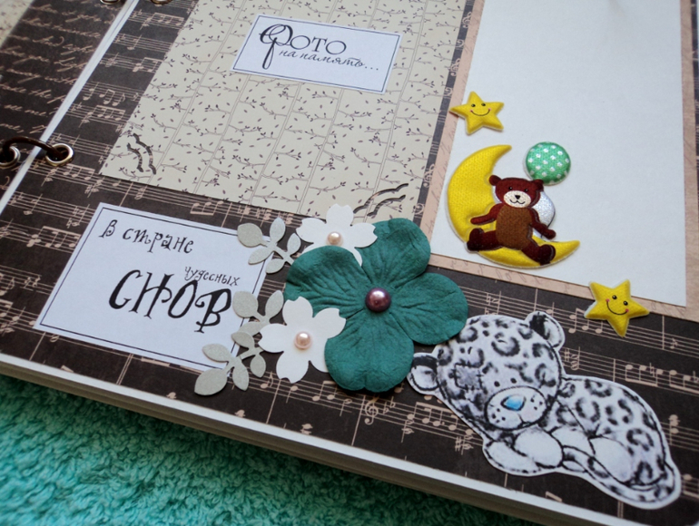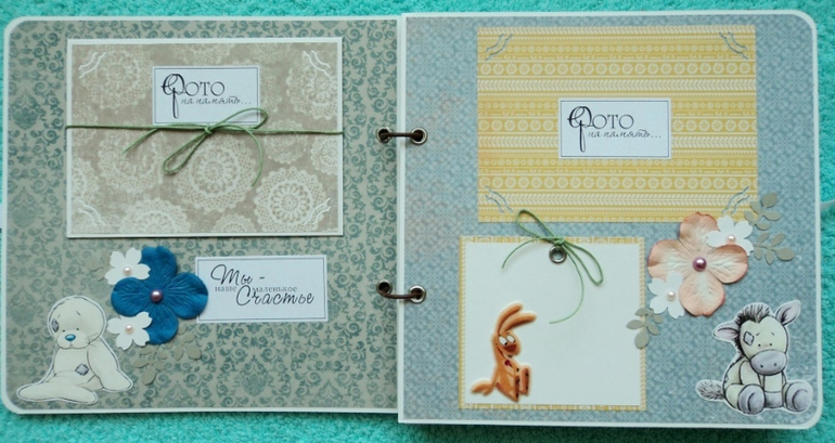 Альбом для мальчика «Тёплый свитер» (бумага на обложке имитирует шерстяную вязку), 6 разворотов, с весёлыми картинками, надписями, есть места для записей. На последнем форзаце - кармашек для отпечатков ручек и ножек (при желании можно поместить туда ещё 4-6 фото на подложках). Продаётся. Итак, смотрим (под катом очень много фото).