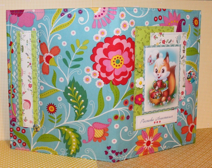 Большая папка для документов. Закрывается на пуговку. Внутри 3 файла и 3 больших кармана.