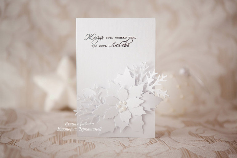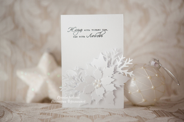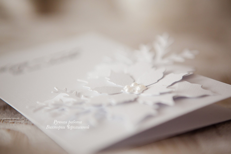 Главной героиней зимних свадебных пригласительных, которые я хочу показать Вам сегодня, стала Рождественская звезда - Её Величество Пуансеттия! Раньше я даже не знала про этот цветок, а сейчас он меня вдохновляет на создание таких чистых и элегантных работ, как эта.