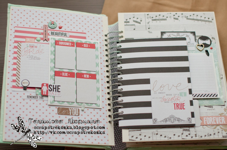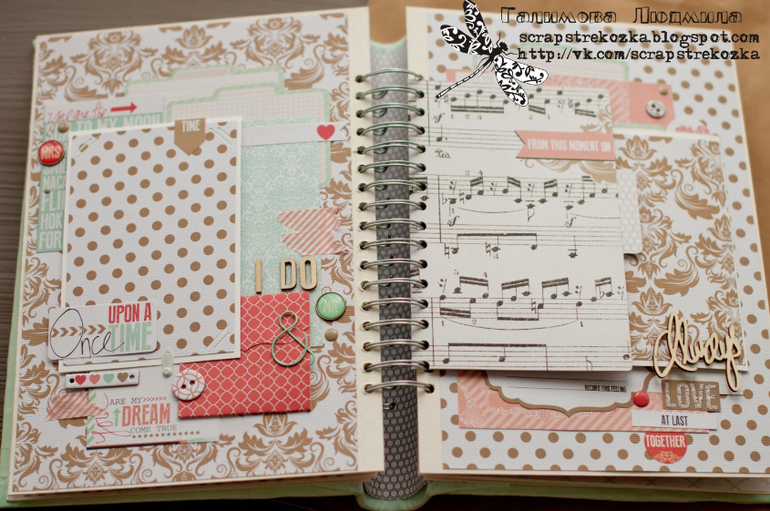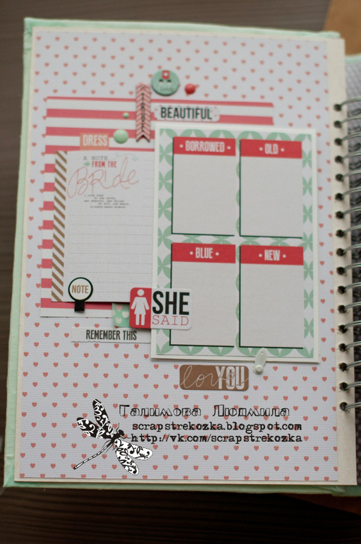 Альбомы СвадебныеУспеть за 12 часов - у меня приблизительно так и получается за последнее время. Этот альбом не исключение. Конечно, не обошлось без небольших недочетов: с подложками под фото сплошная засада, с размерами замучилась, поэтому фото где-то 10х15, а где-то чуть меньше, не говоря уже про американские стандарты. Но при таком темпе всего не предусмотришь, пришлось оставить как есть.
