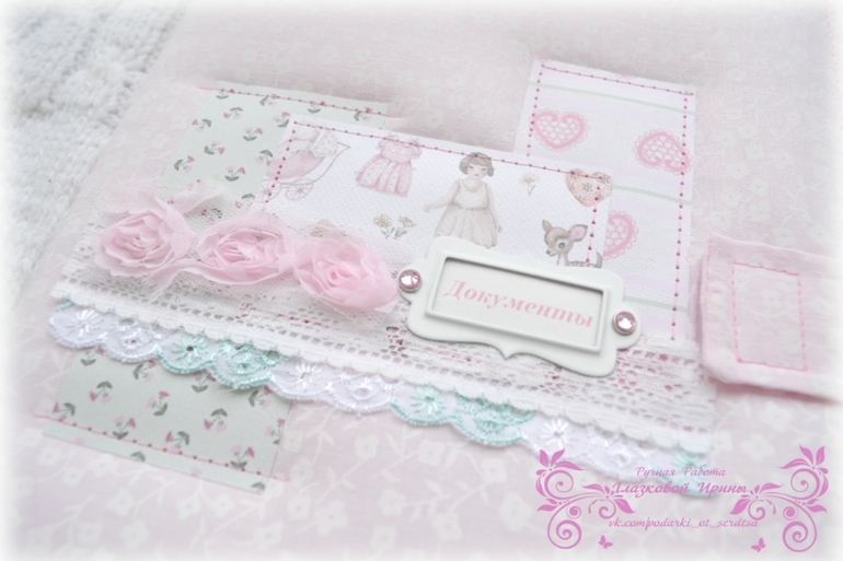 Хочу показать вам одну из последних моих работ. Пожеланими заказчицы было море нежности! Надеюсь, что воплотила все ее мечты в реальность))) Заказ состоял из набора для новорожденной девочки - альбомо-блокнота,папки для свидетельства о рождении и открытки, и еще 2 мини-блокнотика-брелока. Ну начну по-порядку. Нежнейший набор для маленькой новорожденной крошки.