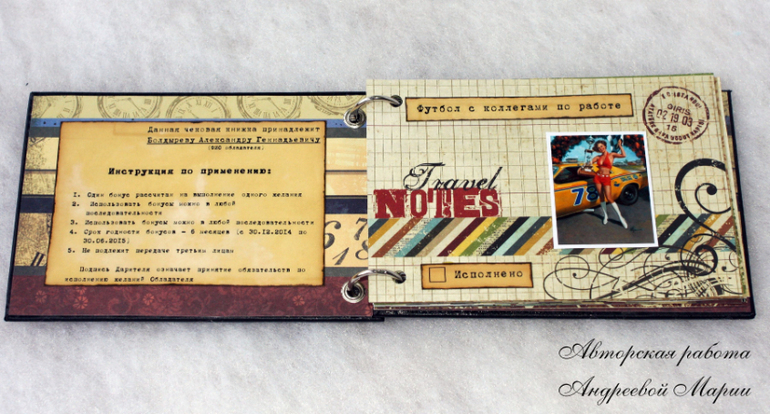 Мария в Скрапбукинг (бумажный) 11 лет Чековая книжка желаний №1 Книги пожеланий, чековые книжки, книжки желаний, кулинарные книги Размер 10 на 15 см. Обложка -черный кожзам. Посмотрите еще 20 записей на эту тему Отменить Ответить Maxomama Можно заказать? 13.11.2015 Ответить Мария можно. пишите в лс 13.11.2015 Ответить Настя А вы на заказ делаете? Если да то ск. стоит? 08.02.2015 Ответить Мария ответила в лс 09.02.2015 Ответить Юлия Хороша!!! А не подскажете что за шрифт? 24.12.2014 Ответить Мария спасибо)))))) шрифт называется TrixieCyr-Plain 25.12.2014 Ответить Елена Классная!!!! 24.12.2014 Ответить Ура!!!!готова первая работа! кулинарка!!! всё новое - хорошо забытое старое. Чаты Беременных Выберите чат: Январята-2026 Февралята-2026 Мартята-2026 Апрелята-2026 Майчата-2026 Июнята-2026 Июлята-2026 Августята-2026