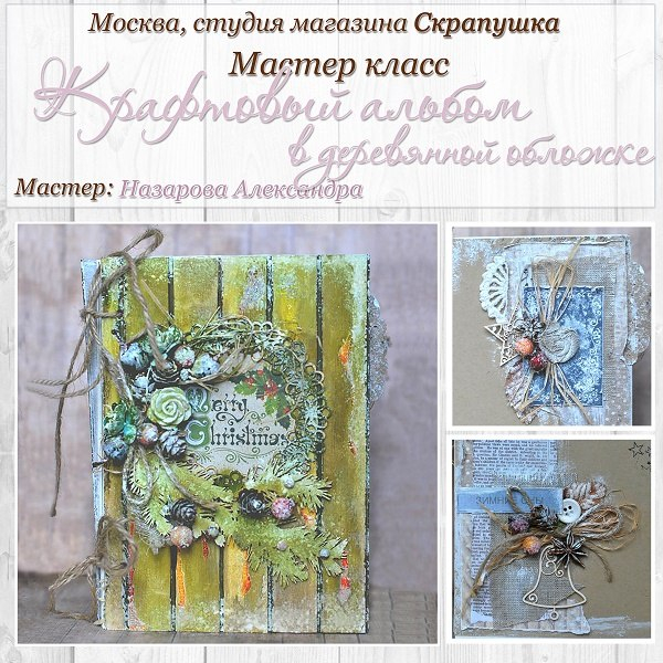 Приглашаю Вас на мой МК по зимнему крафт альбому в деревянной обложке