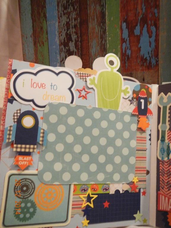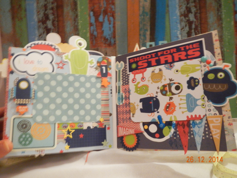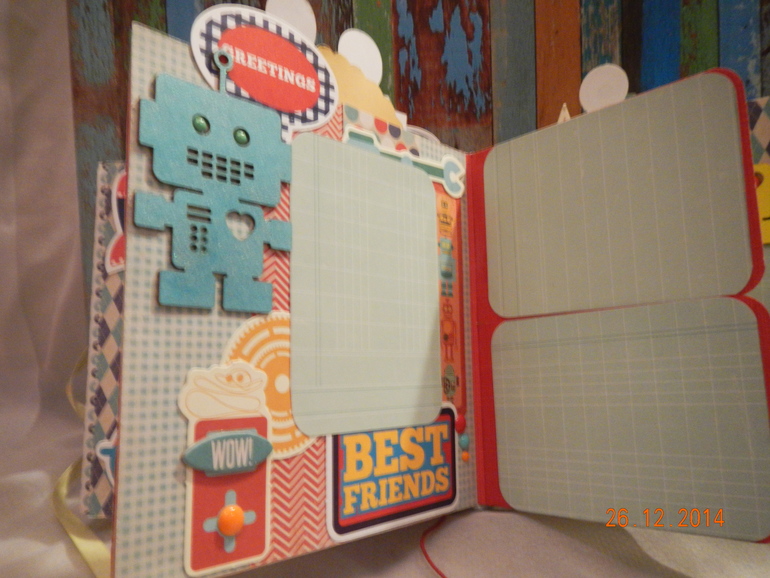 Немного об альбоме делался для друга сынишки, формат 15х15, старалась повторить многослойность Тани, получился значительный пухляш))