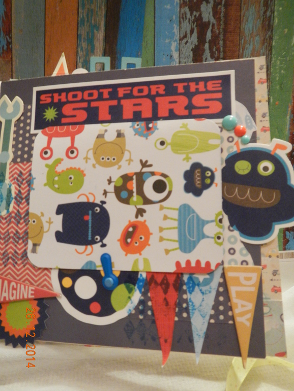 Приятно такое слышать)) здесь сборная солянка: основная carta Bella "rough tumble" и kaisercraft " blast off" высечки к этой же коллекции.