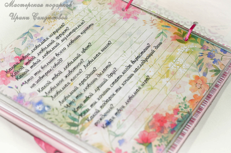 Перед каждым картонным листом-калька, картонные странички разноцветные на каждый год, от 1 до 11, потом идет страничка с вопросами, и опять калька и картон на след год… вот по такой схеме, и вырезаны рамки для вставки фото на картонные странички, куда будут каждый год вставляться фото малышки с др до 11 лет) Принимаю заказы. Приглашаю вас в группу в вк http://vk.com/malishislepok