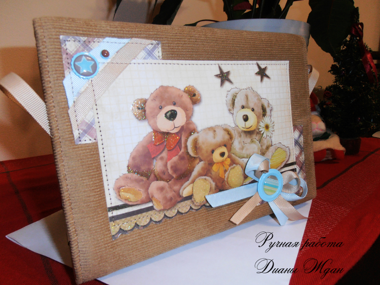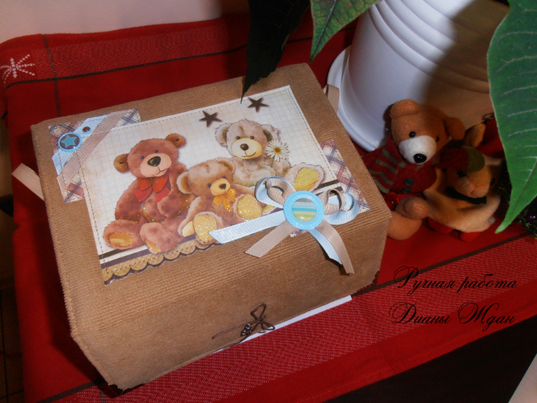 3. Фотобокс для сына моей подруги Мишеньки. Бумагу именно для этого малыша и покупала и наконец-то нашла, куда применить))) Подарок тоже оказался нужным, фотобокс уже наполовину полон! Размер 19х14х10см.Сделала дно ромбиками, понравилось)))