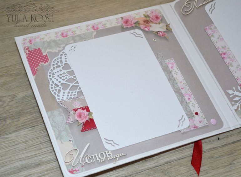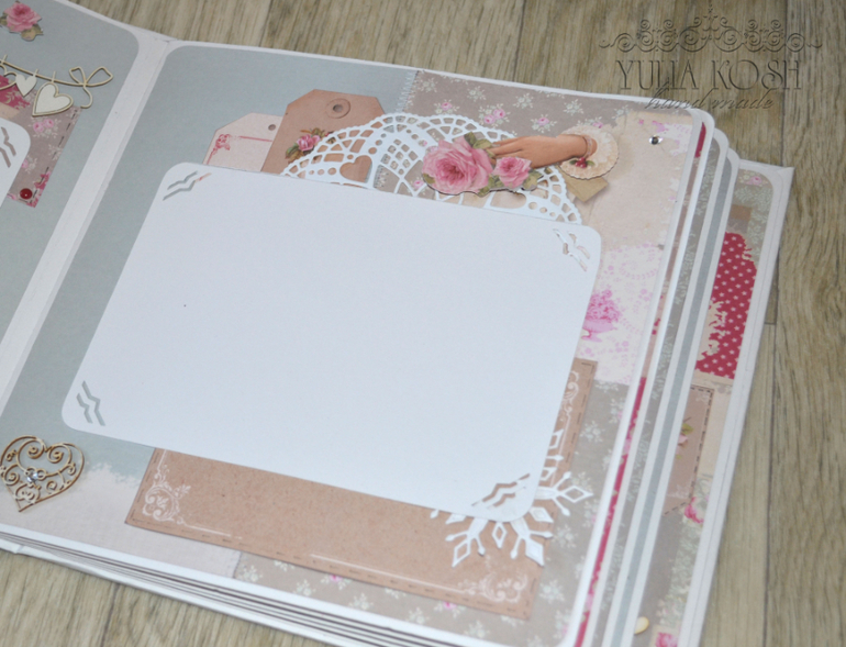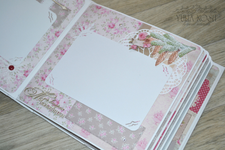 Почему нет? Шебби между прочим это не только переграможденные страницы цветами и гипсом)) К тому конструкция альбома не позволит сделать что то подобное...альбом скосит от тяжести)) Так и хотелось сделать что то с намек на легкое шебби))