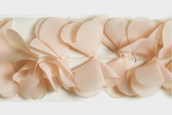 4. Лента тканевая. Цветы на сетке. Ширина в самой широкой части 7 см. Цена 120 руб. за 1 м.