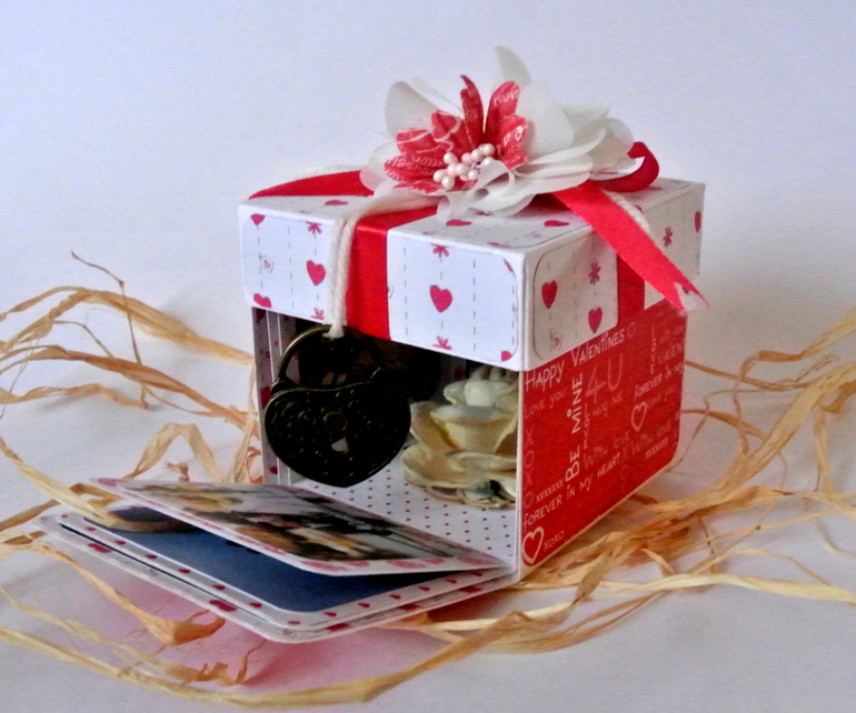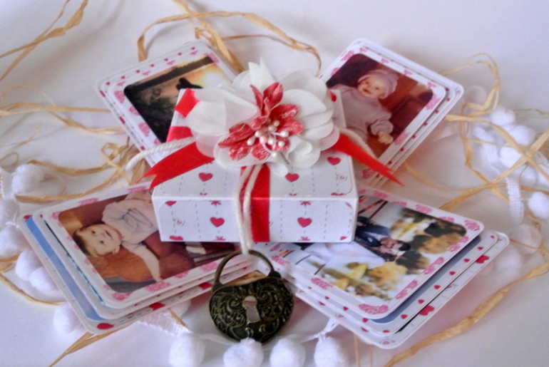 В этой коробочке получилась история одной очень хорошей пары с самого их детства. Снаружи замочек, а внутри ключик, он отвязывается. Можно возлюбленному или возлюбленной вручить штучку с ключиком, а потом коробочку подарить)))