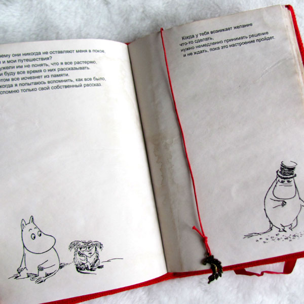Приве-е-е-ет! Сегодня я прибежала показать вам необычный блокнотик. Совсем недавно в нашей домашней библиотеке появилась одна из частей замечательной сказки о муми-троллях Туве Янссон. Александра в свои 4,5 года не прониклась пока историями о сказочных человечках, зато я.....)))). Блокнотик по этому поводу появился с цитатами из книги и иллюстрациями . Формат А5, 80 тонированных в кофе листиков. Подробнее в
