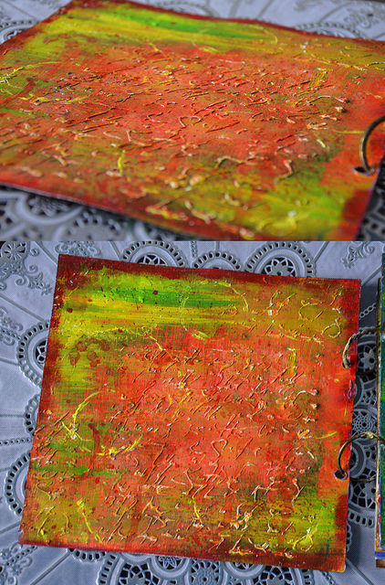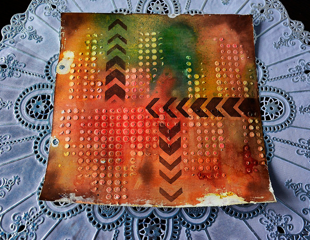 1. Здесь использовались: трафарет, рельефная паста, салфетки, акрил