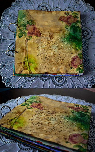 9. Моя любимая на сегодня страничка: применила здесь технику декупаж. Материалы: кофе, алкогольные чернила, салфетка, чипборд.