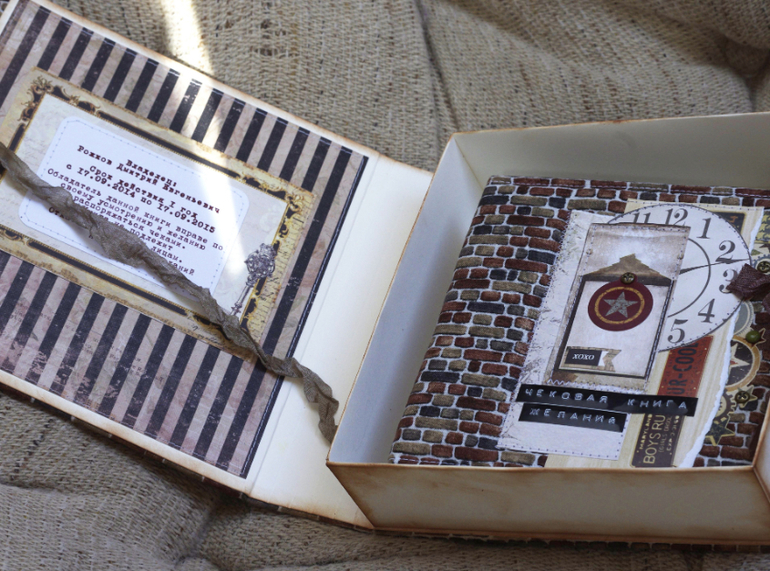 чековая книга в подарочной коробке.