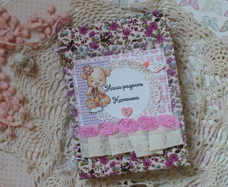Покажу блокното-альбом для малышки Катеньки! Наконец-то поступил заказ на такой пухлик для девочки!!!!:)Уррраа! Душа моя оторвалась на розовых бумажках ,цветочках и прочей нежной прелести :))