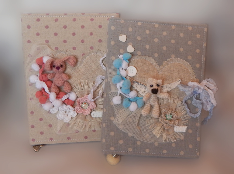 Я опять с блокнотиками. Зайки почти полный повтор предыдущего блокнота, у мишек льняная обложка и в этот раз с разделителями.