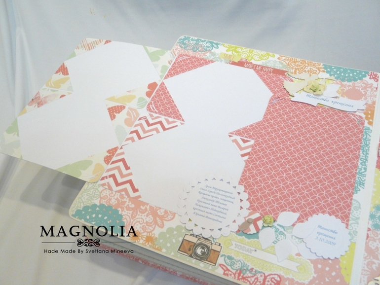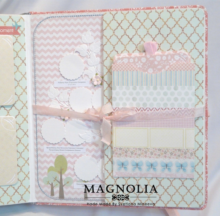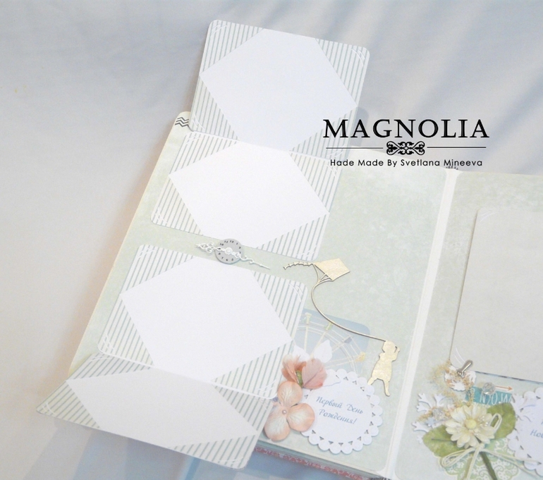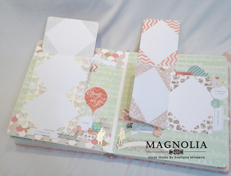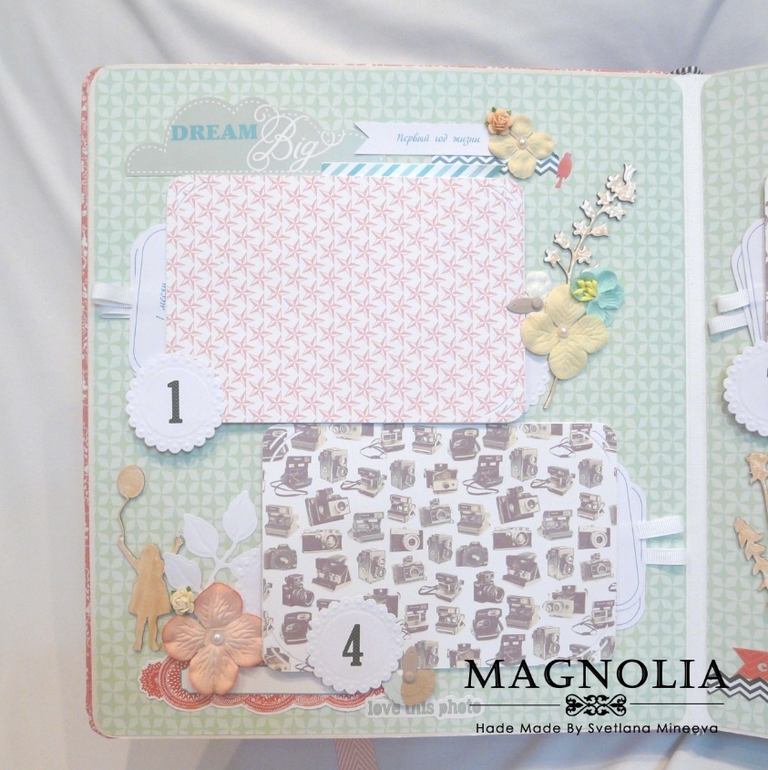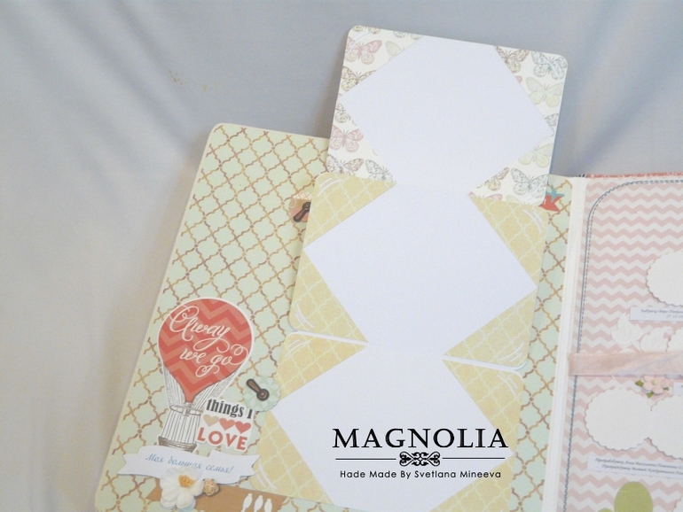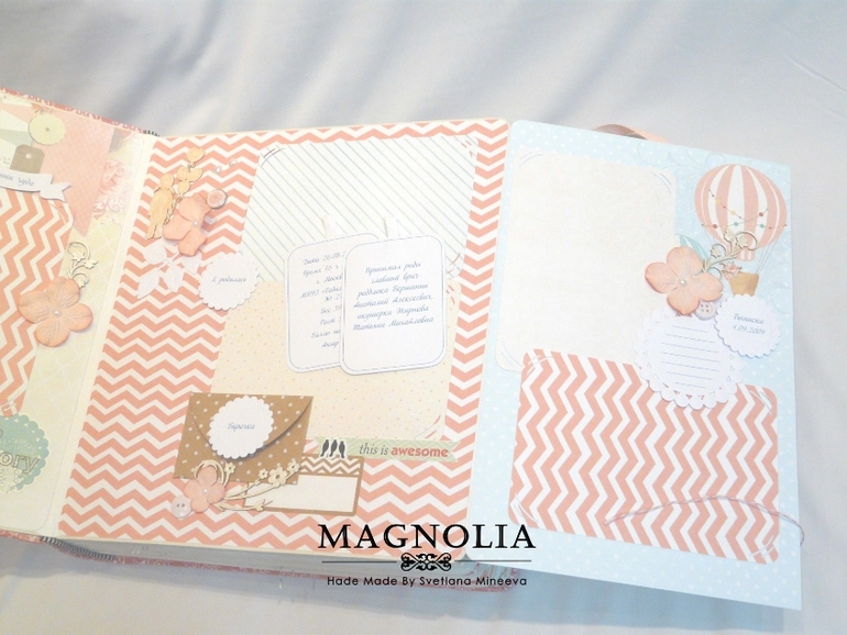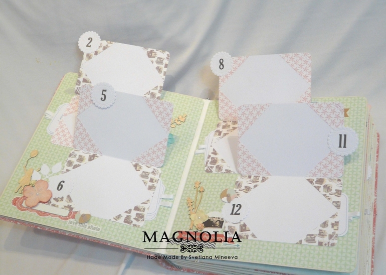Альбом получился большим и вместительным, кстати еще был по аналогии изготовлен альбом-близнец, но для мальчика. Т.е. этот альбом для дочки, а еще есть для сыночка. Его покажу попозже, но они по структуре и организации очень похожи