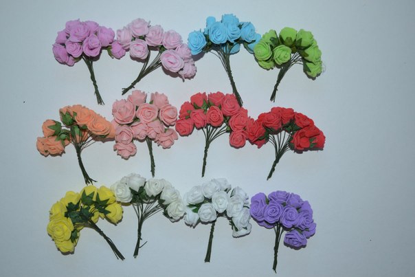 17. Цена 36руб за букет. Цветы -розы латексные. Размер цветка 2см, длина стебля 8см. В букете 12цветов.
