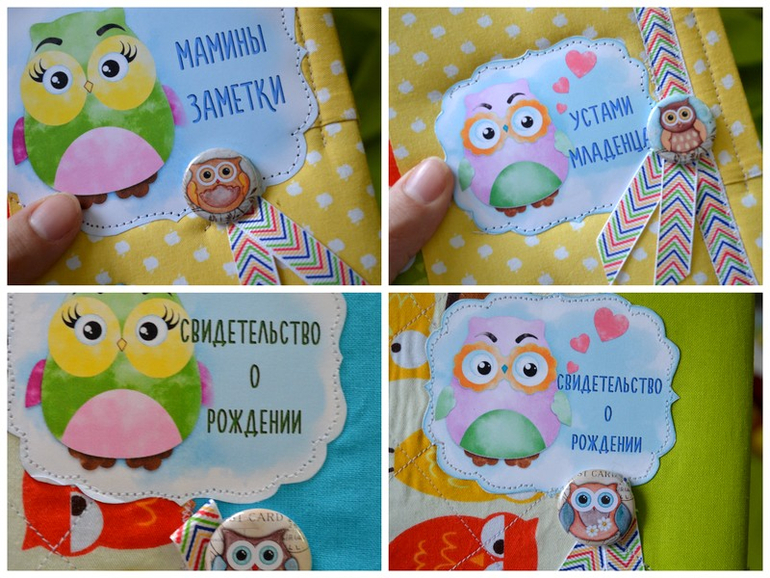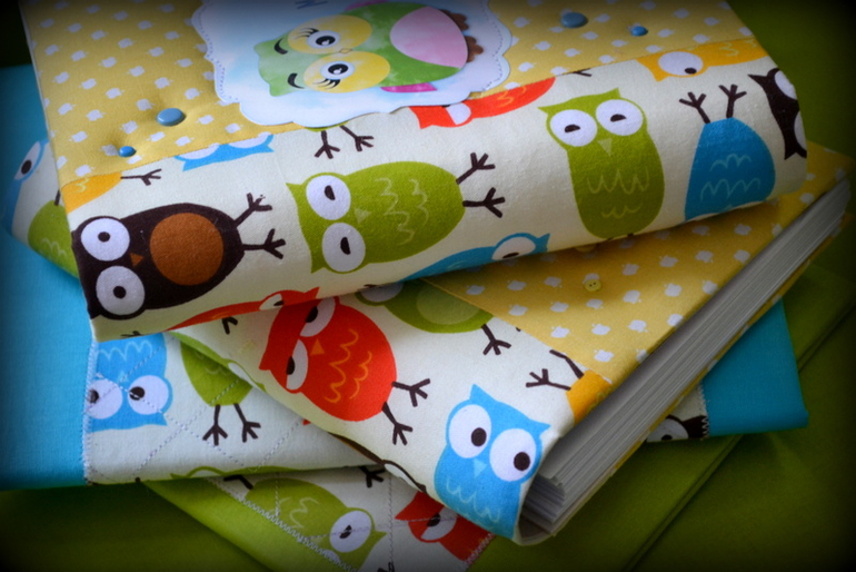 Тканюшки было мало- а найти у нас ее не найдешь только под заказ- поэтому я ее компоновала с др тканями))) ну и совы есть на табличках,фишках и листочках