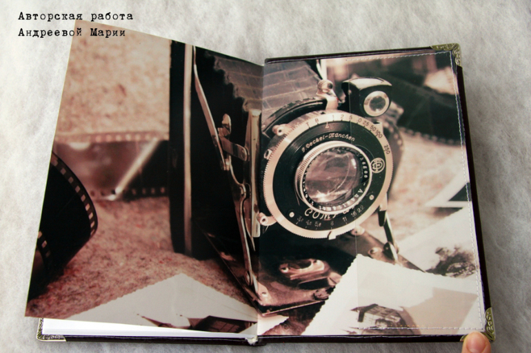 Блокнот для записей фотографа. Изготовлен из готового блока ежедневника. Обложка - темно-коричневый кожзам. На заднем форзаце прозрачный кармашек. Фото под катом.