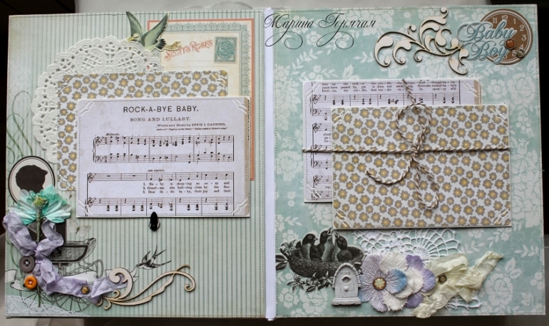 Итак, этот альбом должен был получится подобным альбому для Ильи. В целом они почти идентичны, хотя, в отличии от своего "старшего брата", альбом для Марка получился более нежным и интересным за счет добавления бумаги из коллекции Tilda "The Seaside Life".