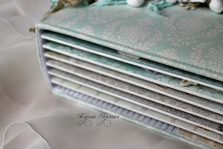 Вот такой он, альбом для Марка). В эту мятную ткань с узором дамаск я просто влюбилась и в скором времени покажу вам еще один альбомчик с ее участием. Забегая наперед, скажу, что это будет очень долгожданный для меня альбом))).