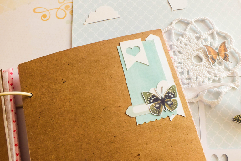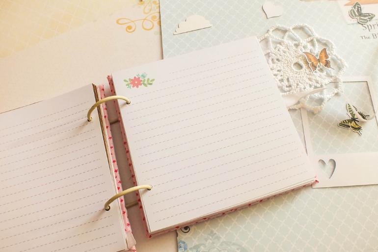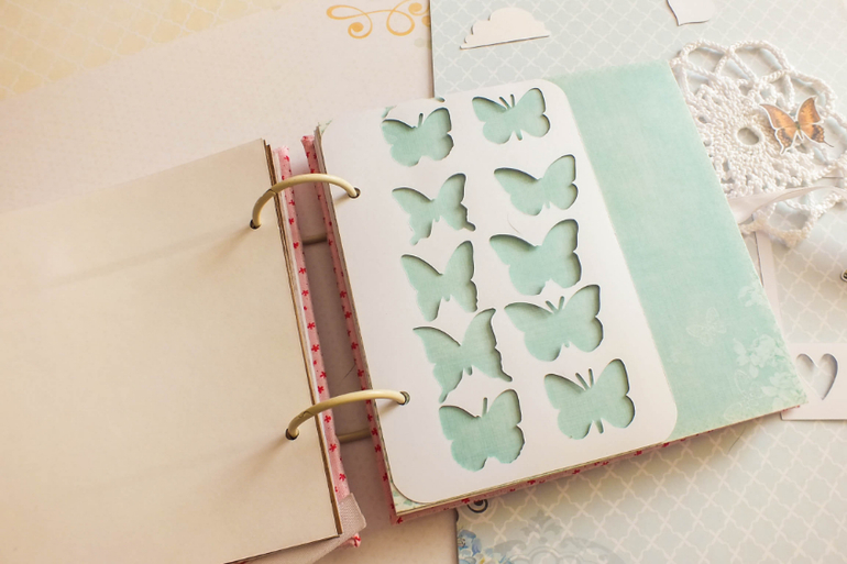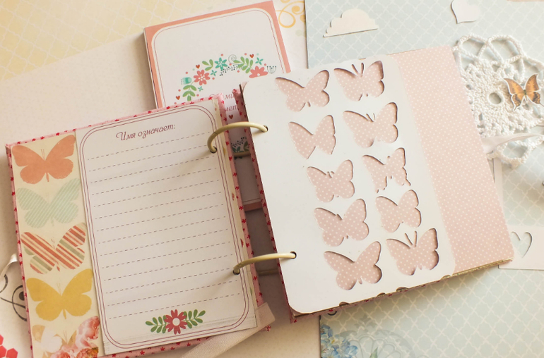 Блокнот на кольцах, что позволяет добавлять фотографии, памятные вещички и многое другое)