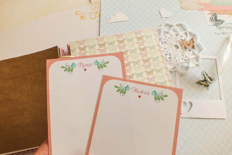 БлокнотыБлокнот для маминых заметок, чтобы самые первые и важные воспоминания остались на страницах этого блокнота. Внутри 60 линованных листов повышенной, 10 разделителей из скрап и крафт бумаги, 29 карточек ( 12 штук по месяцам, главная, мамины заметки, ручка, ножка, мамины пожелания, папины пожелания, первые слова, первая прогулка, первое купание, достижения, любимые игрушки, крещение, таблички с ростом-весом, прививки, зубки).