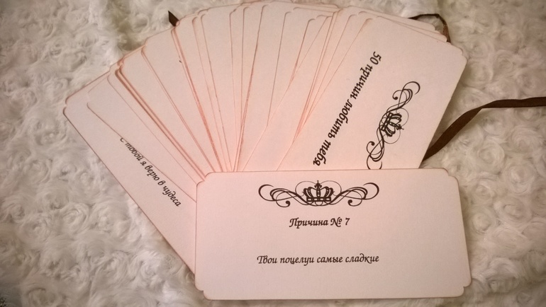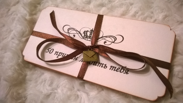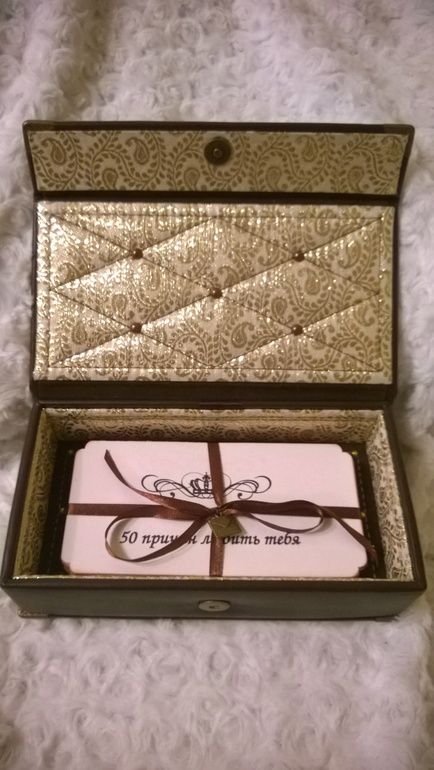 Эту шкатулку я предложила девушке (она на 23 число заказывала купюрницу для мужа), оформление устроило и завтра шкатулка будет у нее. А вот 50 причин остались мне на память!