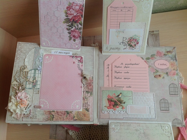 Альбомы ДетскиеВсем привет ! Хочу показать вам альбом для фотографий первого годика малышки Ксении. Делала его с огромным удовольствием и вдохновением! Формат 20х20 см.,7 разворотов.