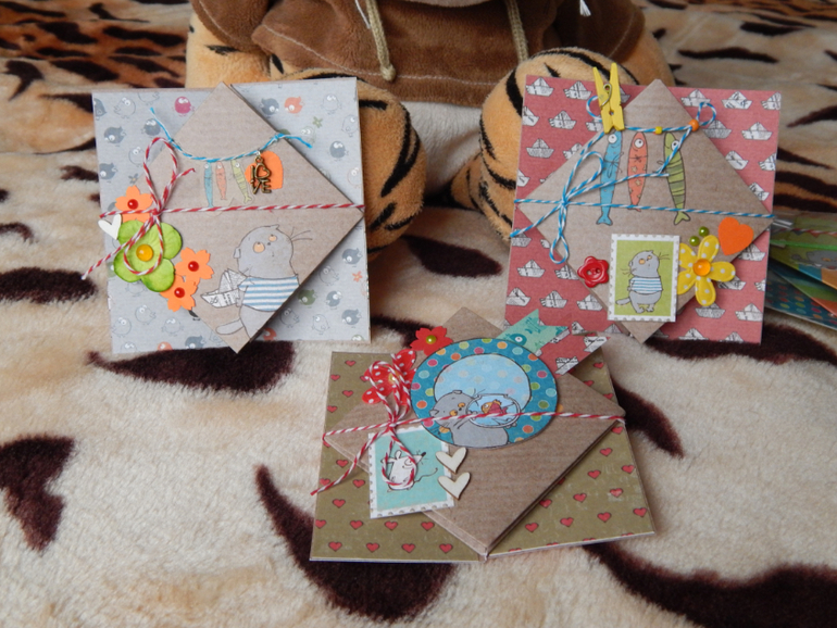 Милый кот Басик и его друзья! На создание этих валентинок вдохновила коллекция "Кот Басик". Уж очень бумага была умилительная, не удержалась. ))