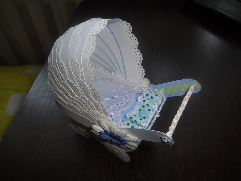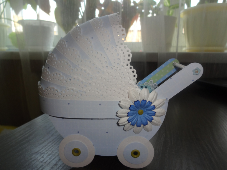 Конверты и коробки для денегВот такой заказ был у меня вчера. Заказчица попросила сделать что-нибудь интересное к рождению племянника. С минимумом украшением и обязательно нежно-голубое... Так и вышла у меня такая колясочка с покрывальцем (туда и прячется денежка!)