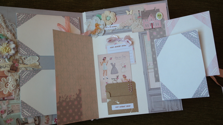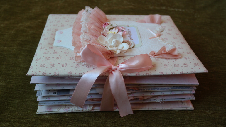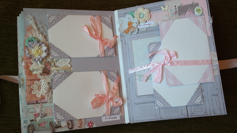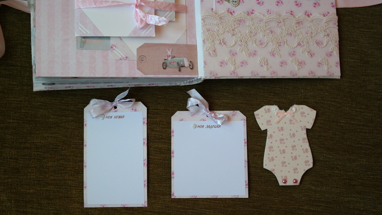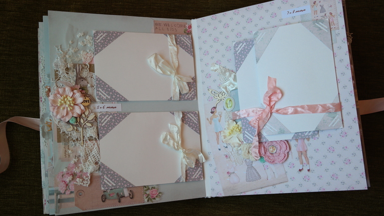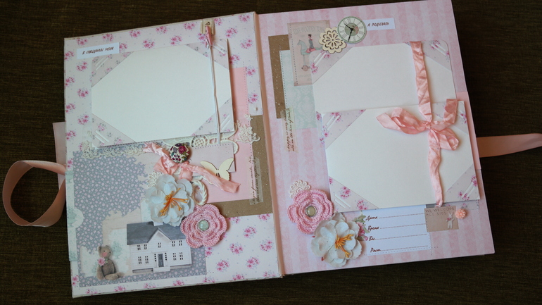 Альбомы ДетскиеВсем привет! Хочу сегодня показать вам очень красивый и нежный альбом для малышки Александры с книжечкой достижений в комплекте! В нем есть: тематические странички про ожидании, рождение, выписку, семью, месяца от рождения до года и многое др. Почти все страницы, обложка и украшения из коллекции Тильда. Получился очень объемный почти 8 см, формат 23 на 30 см, 6 разворотов,12 страниц, поместилось около 60 фото 10 на 15 и другого формата, красивый кружевной карман для для свидетельства о крещении, таблички - ножка, ладошка, метрика, первые слова, мешочек для зубика и локона, книжечка со снимками УЗИ. Очень много раскладушек для фото и книжечек для фото. Спасибо всем за просмотр!