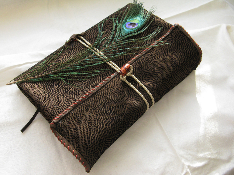 Состаренный блок нотных листов (100 стр) формата А5 переплетён вручную, заключен в обложку из фактурной замши шоколадного цвета (обратная сторона замши кожа цвета какао) внутри большой карман из шоколадного вельвета для дополнительных листов (можно А4). Завязывается на плетёный кожаный шнурок и деревянную бусину, Внутри есть закладка.