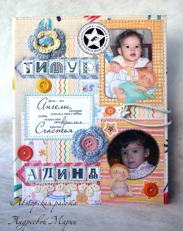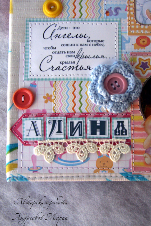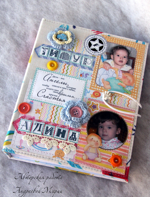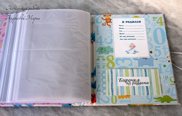Альбомы ДетскиеРазмер 19 на 22 см. Обложка - ситец. Внутри метрика и кармашки под бирку. Застегивается резиночкой на пуговку.