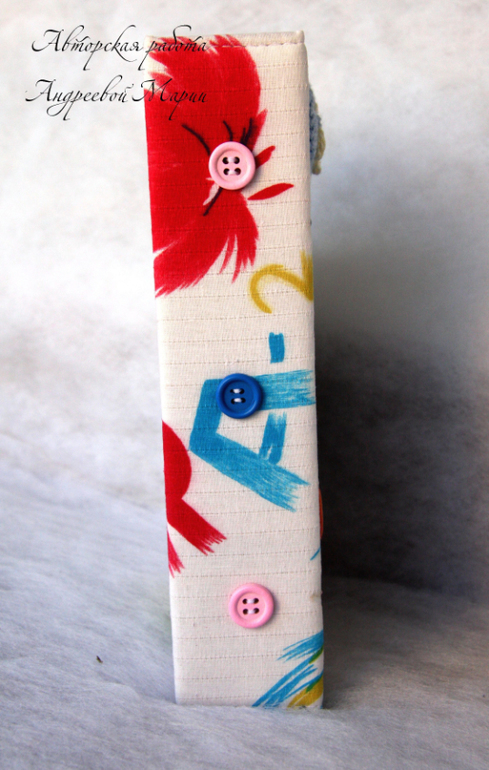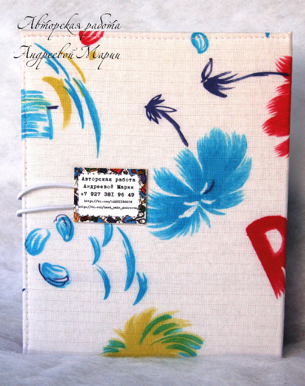 Размер 19 на 22 см. Обложка - ситец. Внутри метрика и кармашки под бирку. Застегивается резиночкой на пуговку.