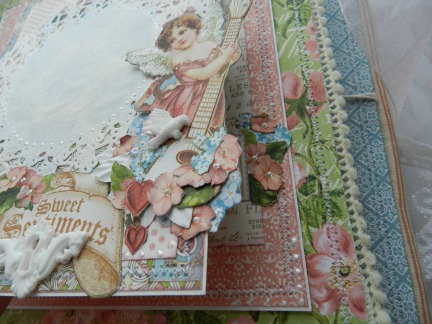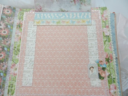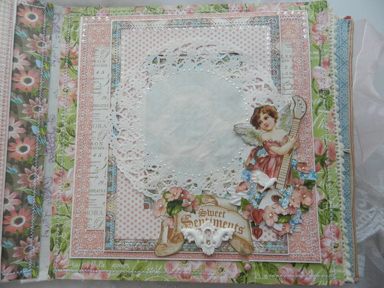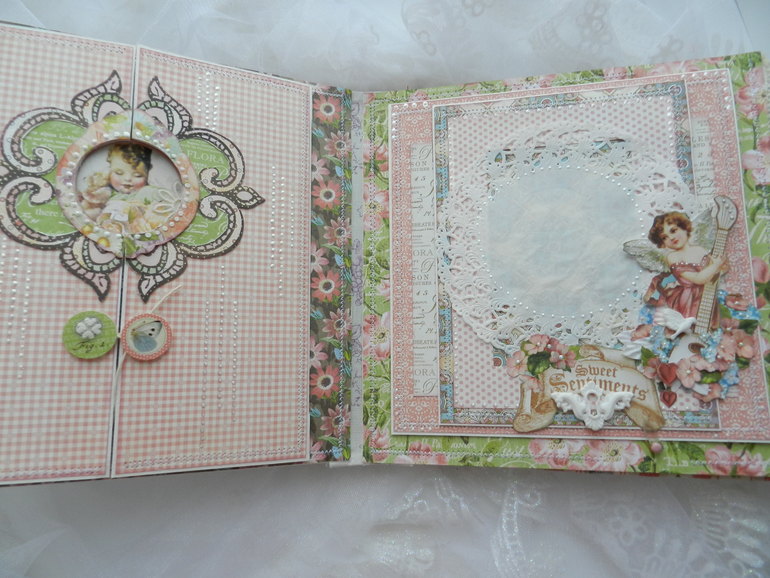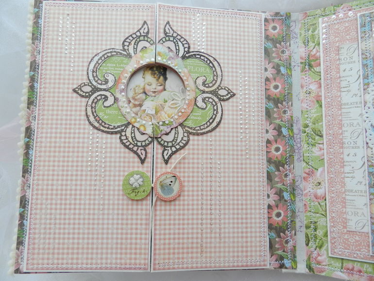 Объемная картинка на верхней раскладушке и место под фото (на кружевной салфетке).