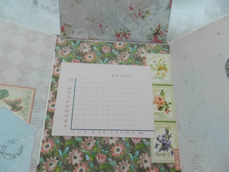 Все, теперь можно наполнять раскладушки. У меня на одной створке карман для тега, а под большой раскладушкой график.