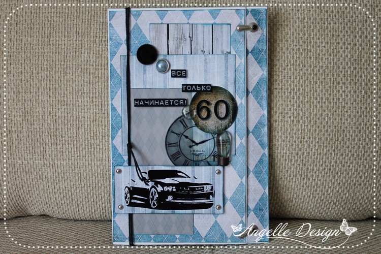 Привет) Подружка попросила папе на юбилей сделать открытку. Вот такая получилась)