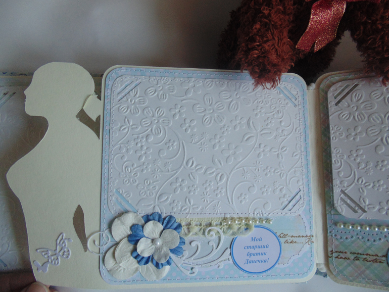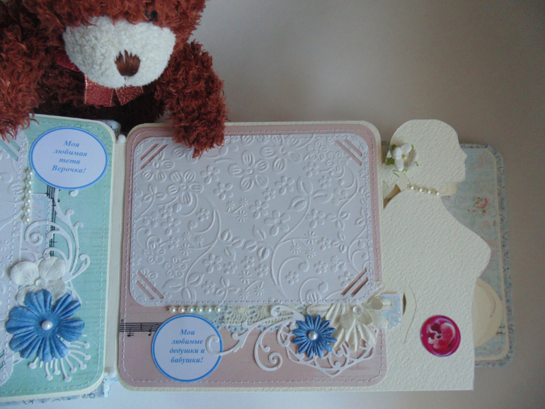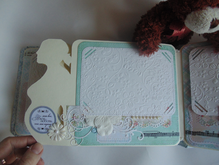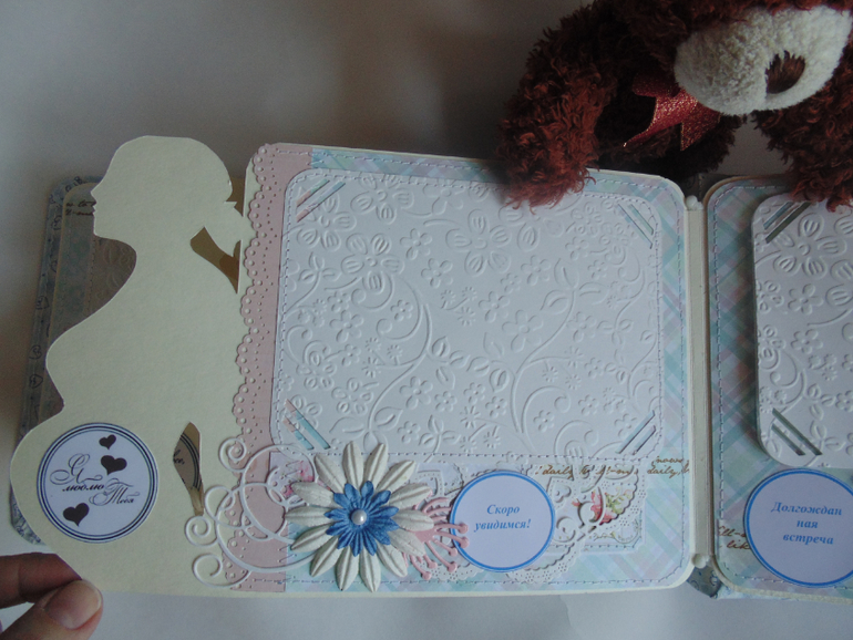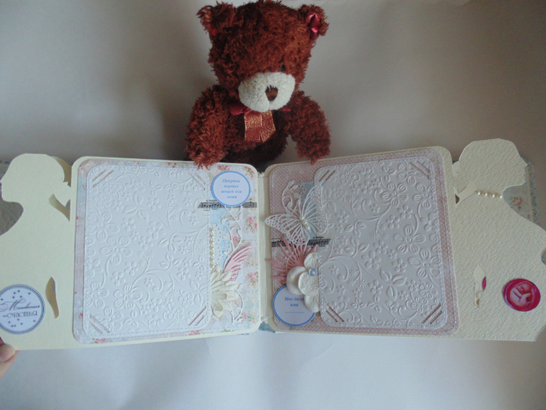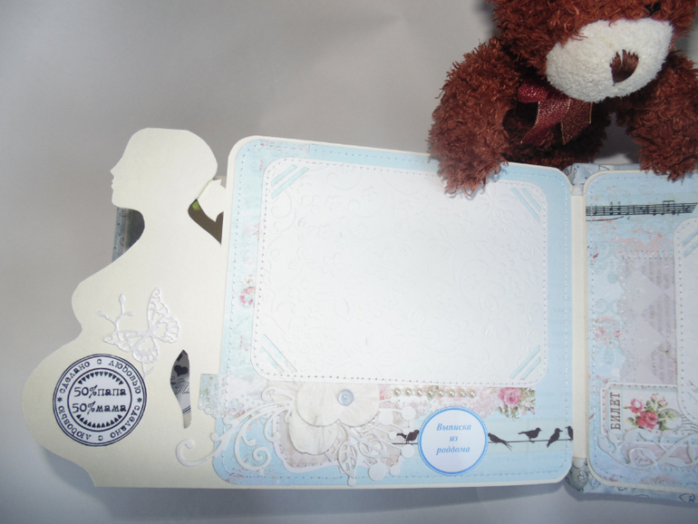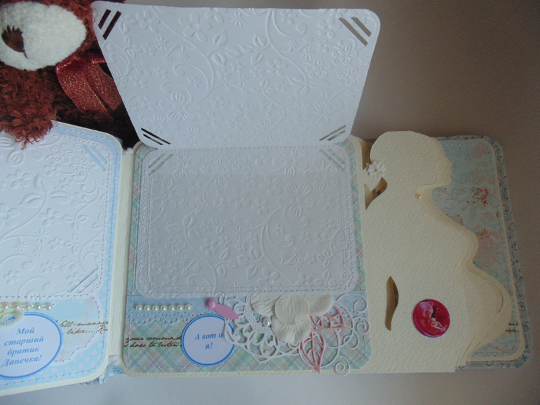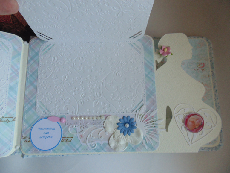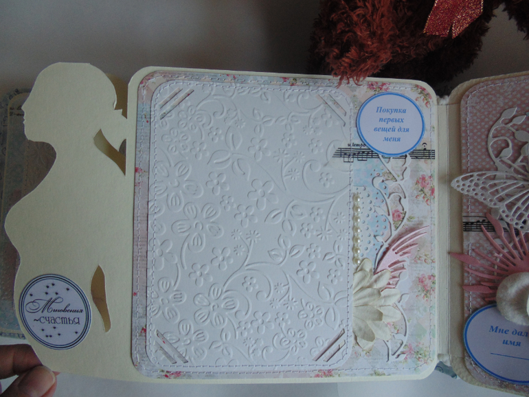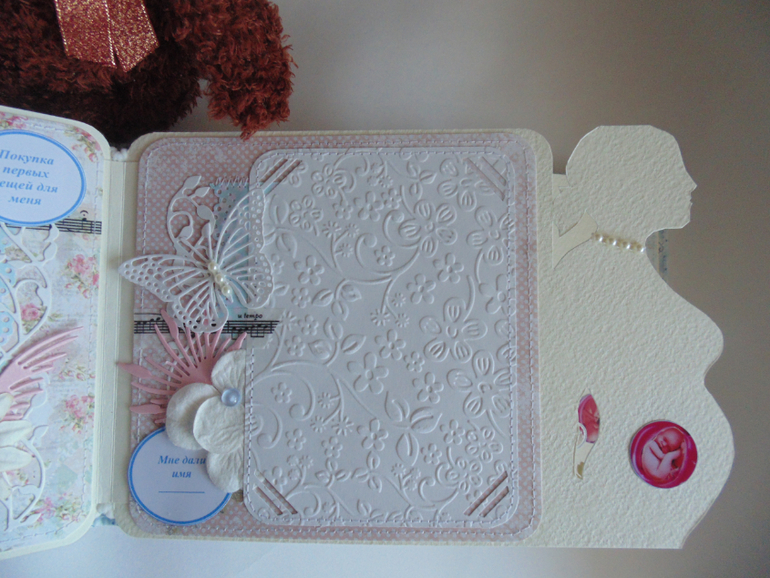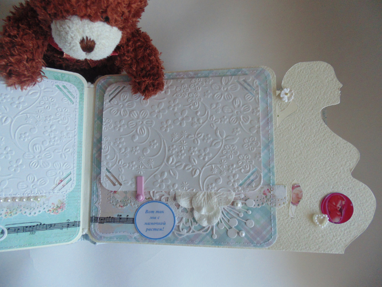 На этой страничке пластиковый кармашек для фото с УЗИ. И "подросший" малыш в животике)))