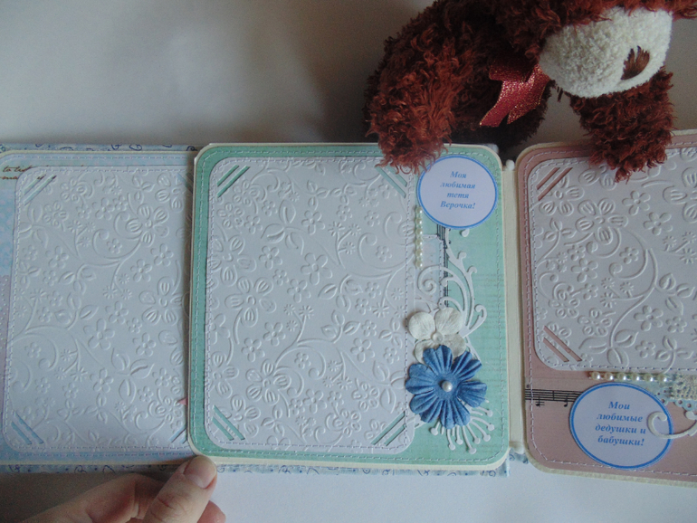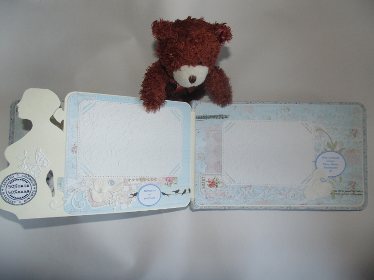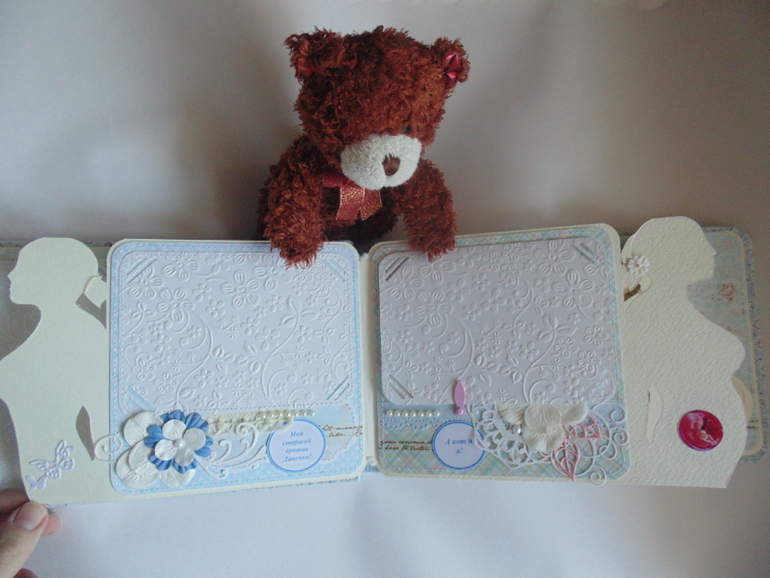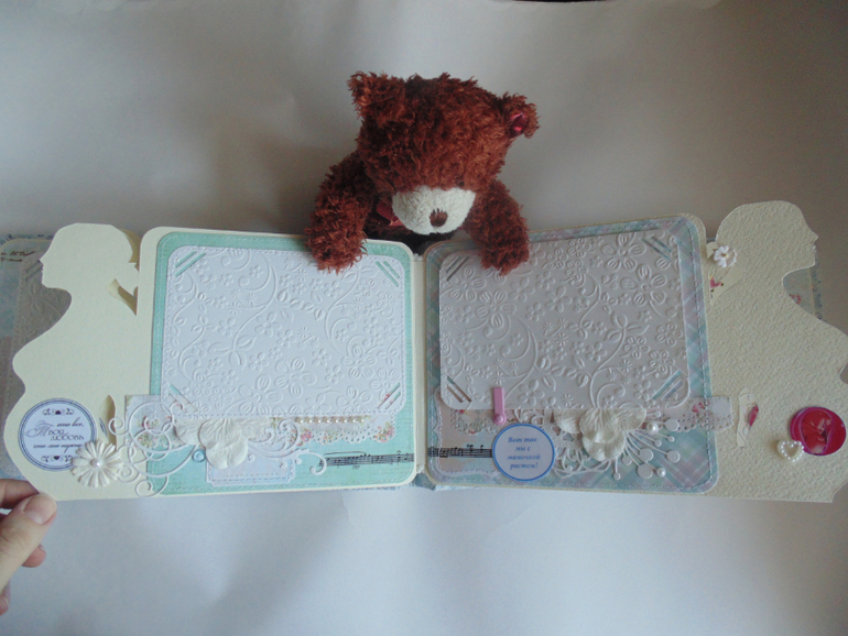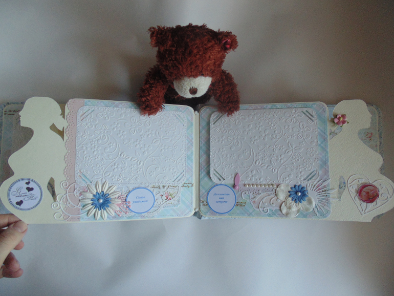 Альбомы В ожидании чудаАльбом сделан на заказ для ББ-шечки Александры, которая сейчас находится в прекрасном ожидании и чтобы сохранить в памяти эти месяцы счастья и был задуман этот альбом. Это первая беременяшечка в переплете, чему я очень рада, кольца как-то поднадоели))). В целом все, как всегда..., но одну новую идею использовала с разрешения Маши - это малыш в животике, как в этом альбоме: http://www.babyblog.ru/community/post/newrukodelie/271413